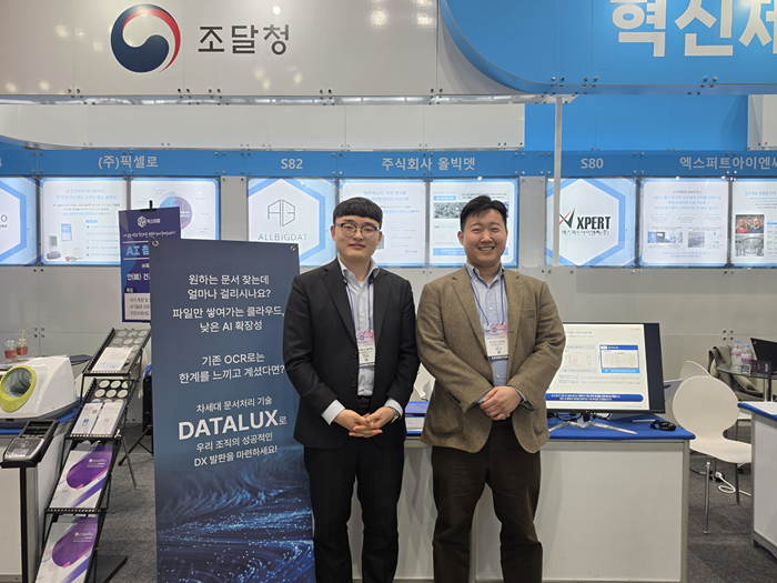 멀티모달 AI 기반 문서 이해 솔루션 기업 올빅뎃(ALLBIGDAT, 대표 이동재)은 ‘코리아 나라장터 엑스포 2026’ 혁신제품관에 참가해 자사 문서 이해 솔루션 DATALUX(데이터럭스)를 선보였다고 밝혔다. 코리아 나라장터 엑스포는 조달청이 주최하는 국내 최대·유일의 조달 전문 전시회로, 중소·벤처·혁신기업의 공공 판로 확대와 해외 조달시장 진출을 지원하는 대표 비즈니스 플랫폼이다.