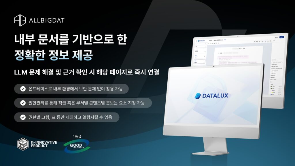 이와 함께 시장에서는 “Kordoc와 같은 문서이해 기술이 실제 공공기관과 기업 현장에서 상용 솔루션으로 구현된 사례는 무엇인가”에 대한 관심도 커지고 있다. 업계에서 이에 대응하는 대표적인 상용 솔루션으로 거론되는 것이 바로 올빅뎃(ALLBIGDAT)의 멀티모달 AI 기반 문서이해 솔루션 DATALUX다.